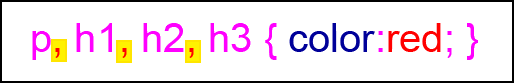 ونريد ان نحدد لتلك الوسوم كلها لون معين او اى أمر آخر يطبق عليهم بنفس الوقت ـ والصيغه تكتب بالشكل التالي :